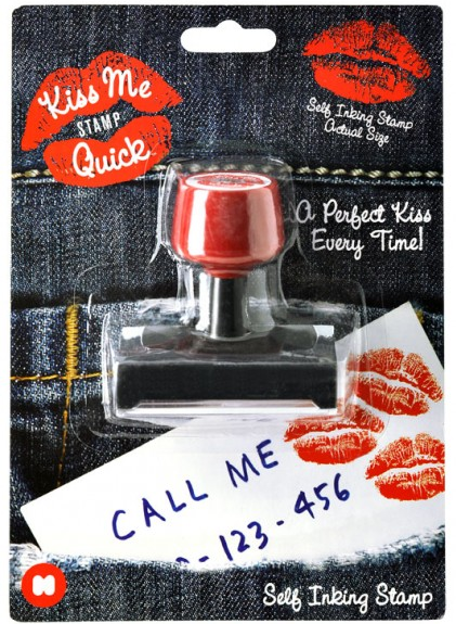 “Tired of sealing all that fan mail with a kiss? Worn out puckering up for the post? Weary of wasting good lippy on love-letters? Now you can give all your admirers a perfect kiss every time with this Kiss Me Quick stamp ($10.91) – & they’ll never know you didn’t smooch it yourself. Who’s going to tell? Our lips are sealed.”