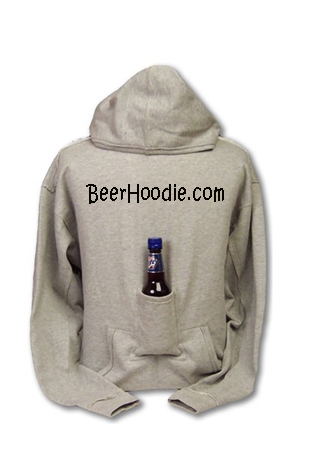 Beer Hoodie is a simple gray hoodie but with a pocket right in the front that perfectly fits a bottle of beer. This is for the guy who needs place to put his beer while hes gaming, watching sports, grilling, dancing, drinking with his other hand, whatever.