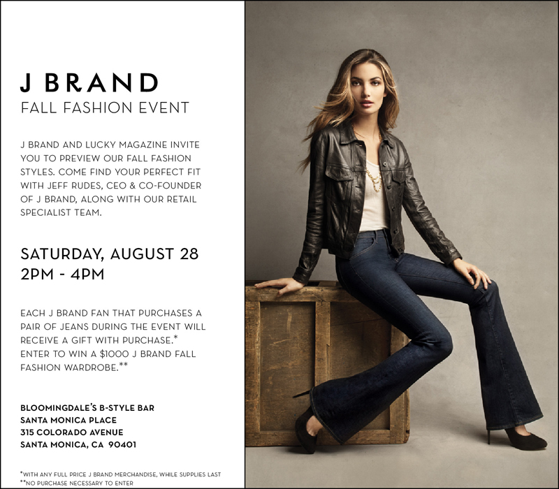 If you’re not in NYC this weekend for some pampering @ Bloomies 59th St. with City Mommy & Shiseido, and you’re stuck allllll the way in LA, longing for some action, you’re in LUCK! Head over to Santa Monica Place’s newly opened Bloomingdale’s for their J Brand event, from 2-4 p.m. This event will  feature a preview of the fall collection from J Brand. Jeff Rudes, CEO and Co-Founder of J Brand, along with a retail specialist team, will be on hand to help shoppers find their perfect jean. Customers will also receive a gift with their purchase. Who doesn’t like a free gift?!