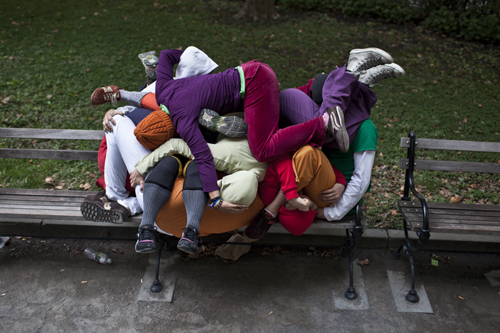 Nope! These colorful performers were part of an outstanding piece entitled “Bodies in Urban Spacesâ€, orchestrated this past Sunday by choreographer Willi Dorner.